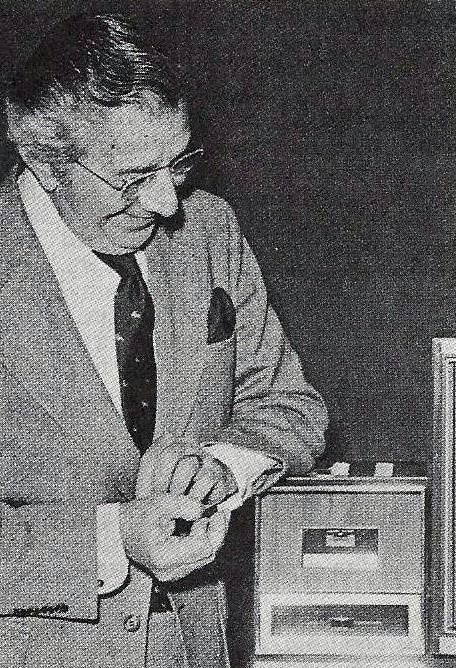 We needed some kind of demonstration, so I hired a guy to cut a slot and add a couple of push buttons to the top of a plastic Kleenex dispenser. I carried that prop, our empty “Black Box”, around the country with me for two years.