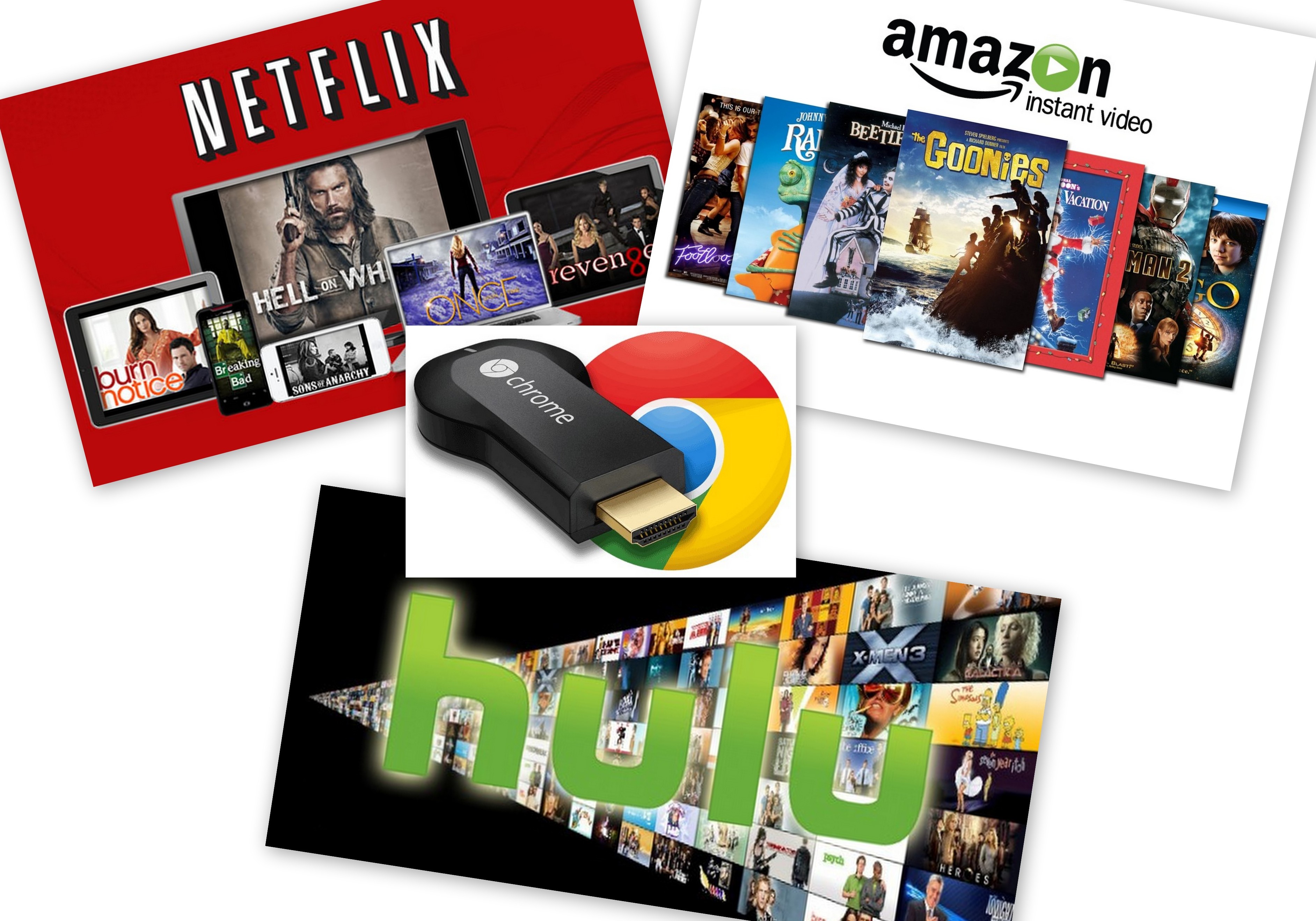 Let’s not forget the other big players in the game. There’s the satellite TV networks reaching another 30 million homes, and of course the internet, with Netflix and Hulu and Amazon and whatever’s coming next, all of which can be streamed to our TV sets with Google’s Chromecast, a little $35 device that looks like a flash drive.