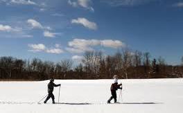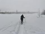 skiing across a lake